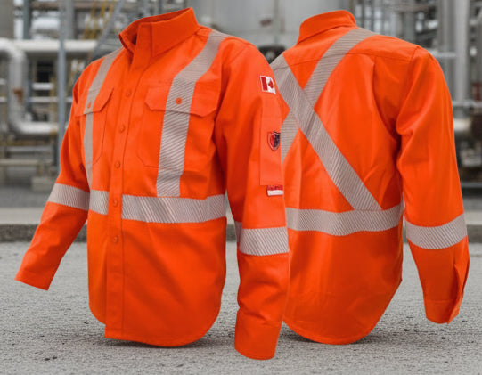 Atlas FR Orange FR Men's Long Sleeve Button-Up Shirt 2'' Silver Reflective Class 2 - 404OR